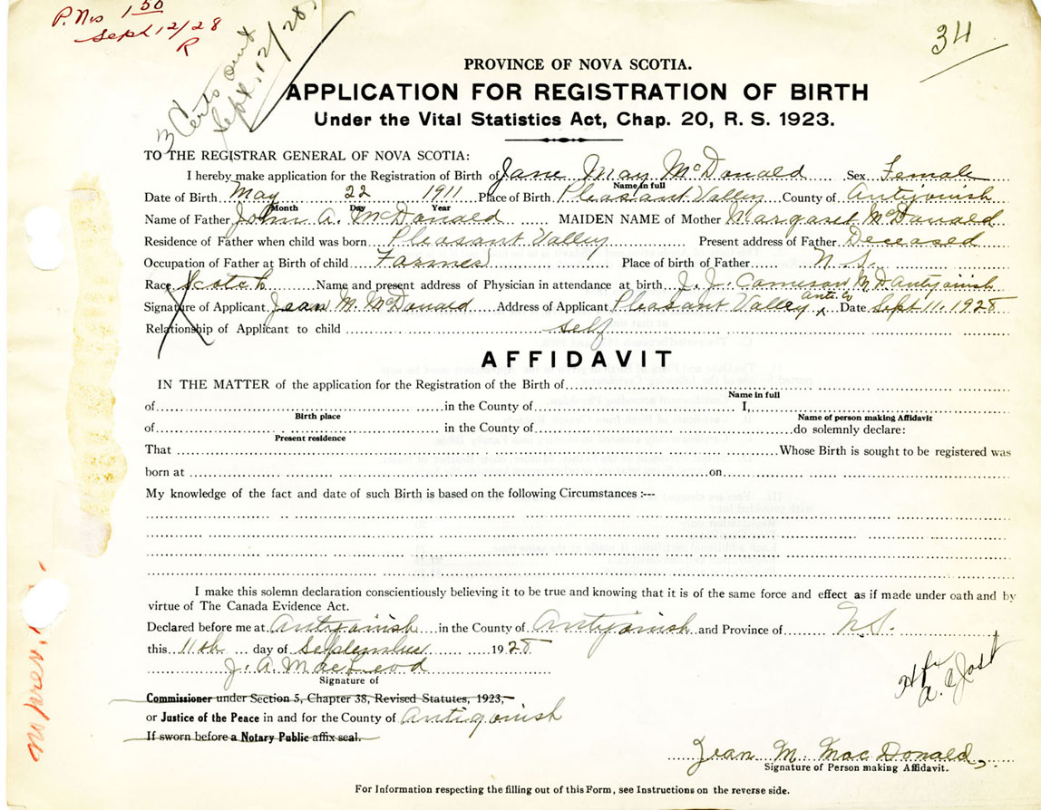 Nova Scotia Archives — https://archives.novascotia.ca/vital-statistics/birth/?ID=270302
