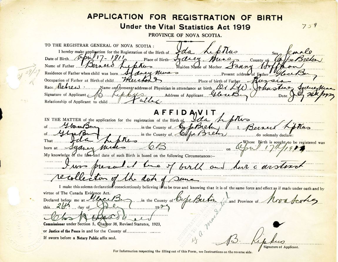 Nova Scotia Archives — https://archives.novascotia.ca/vital-statistics/birth/?ID=270384