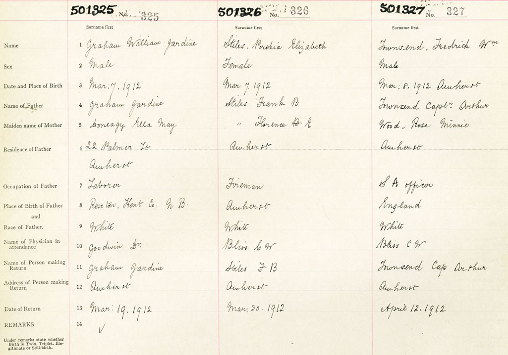 Male Birth Registration: Year: 1912 number: 50100325