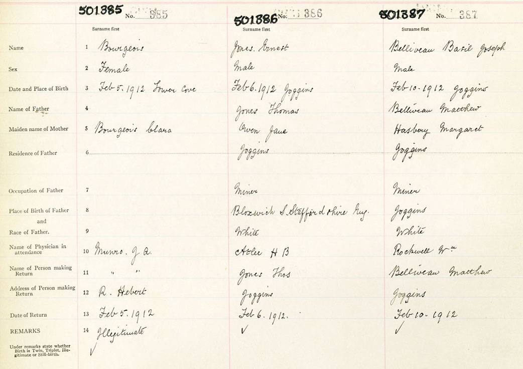Female Birth Registration: Year: 1912 number: 50100385
