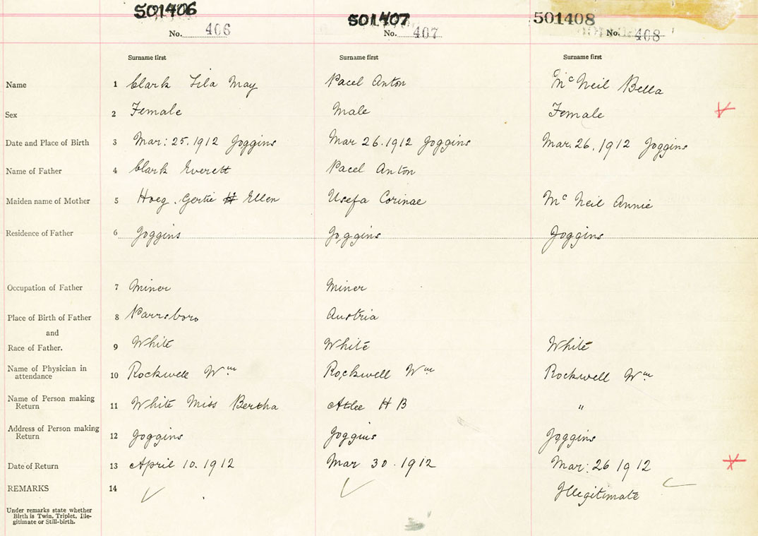 Female Birth Registration: Year: 1912 number: 50100406