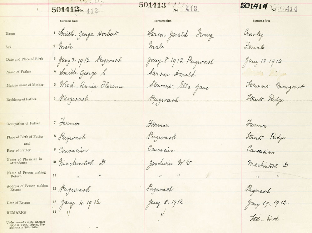 Male Birth Registration: Year: 1912 number: 50100412