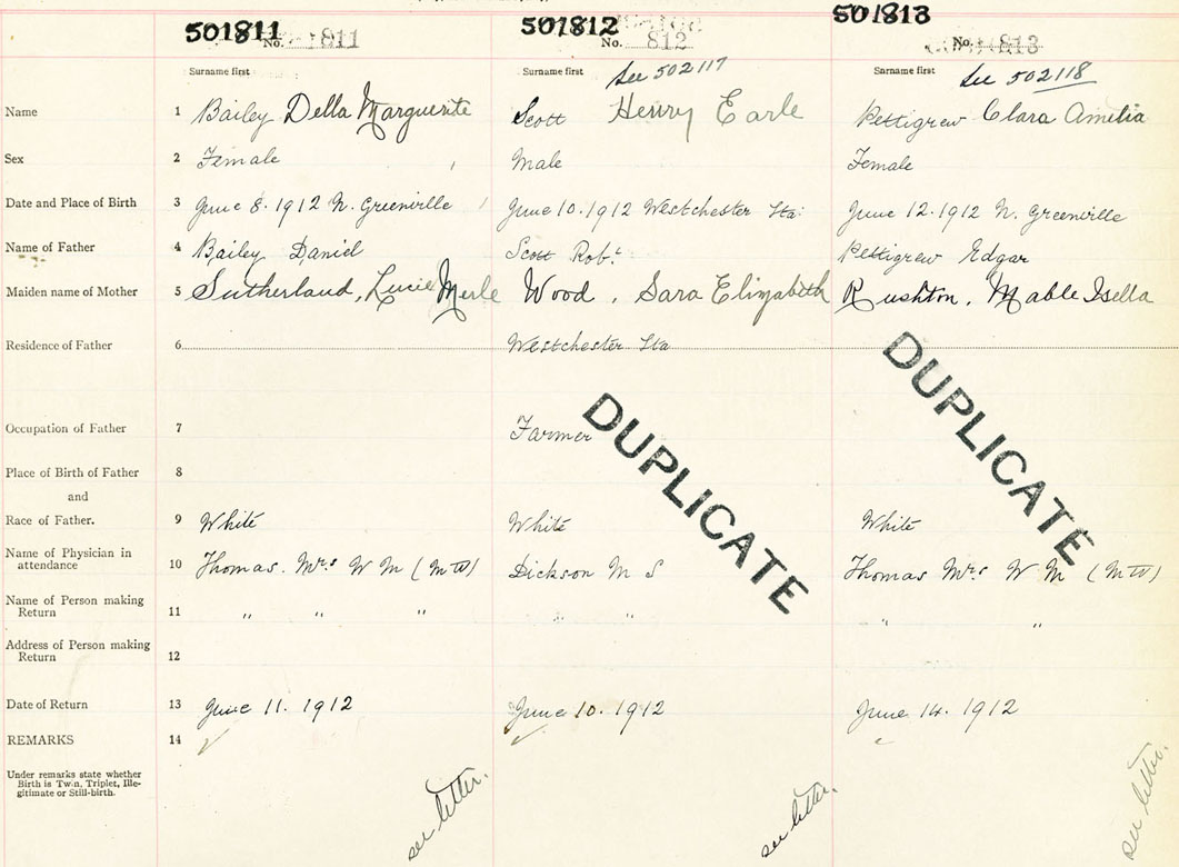 Female Birth Registration: Year: 1912 number: 50100811