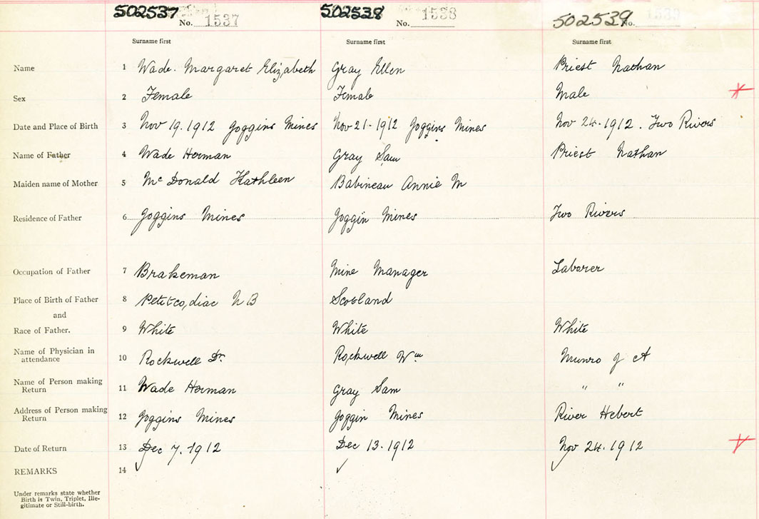 Male Birth Registration: Year: 1912 number: 50200539
