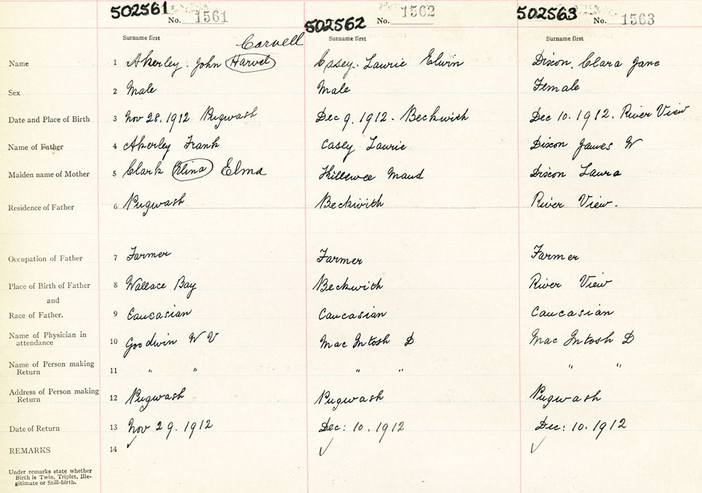 Female Birth Registration: Year: 1912 number: 50200563