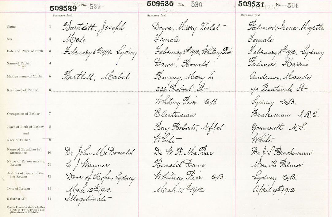 Male Birth Registration: Year: 1912 number: 50900529