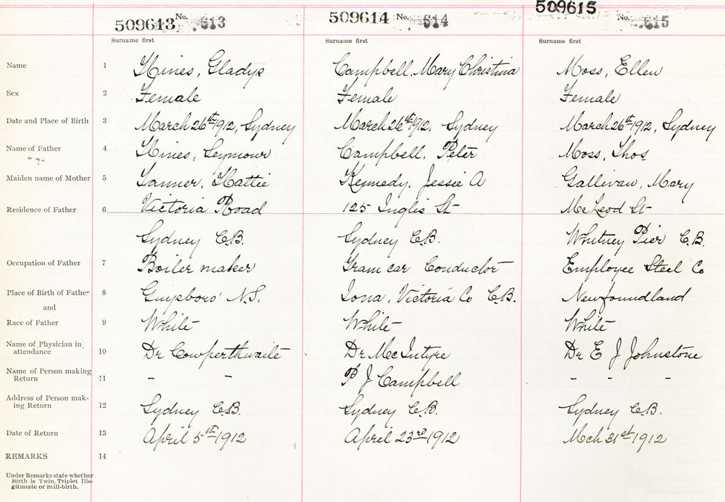Female Birth Registration: Year: 1912 number: 50900613