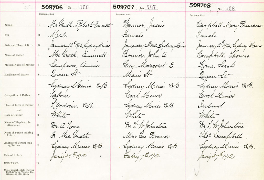 Male Birth Registration: Year: 1912 number: 50900706
