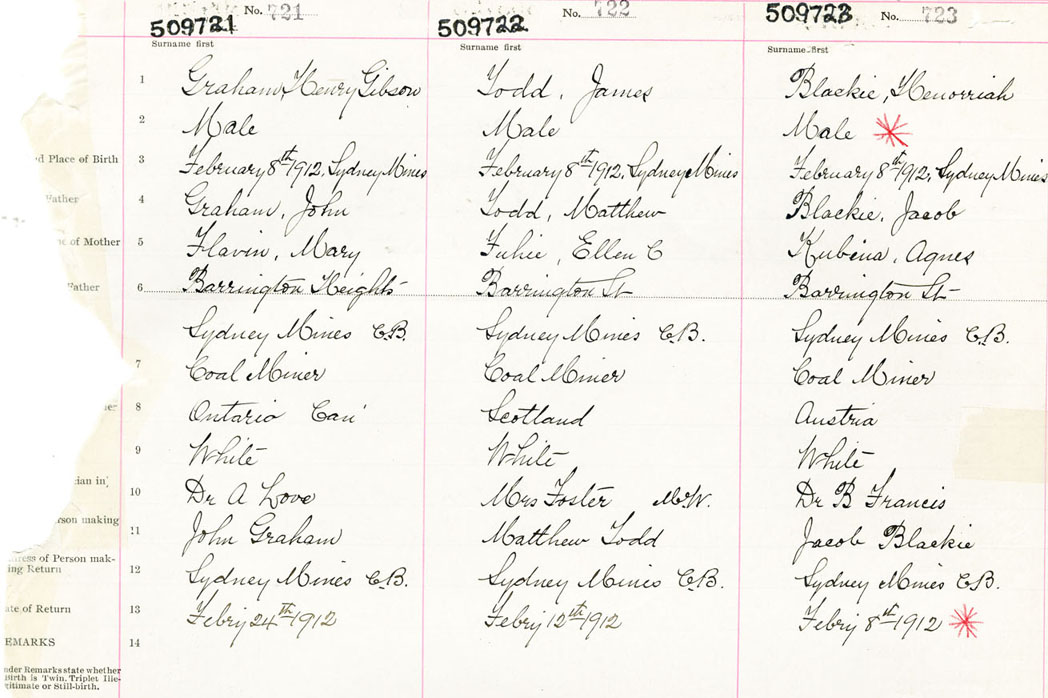 Male Birth Registration: Year: 1912 number: 50900721