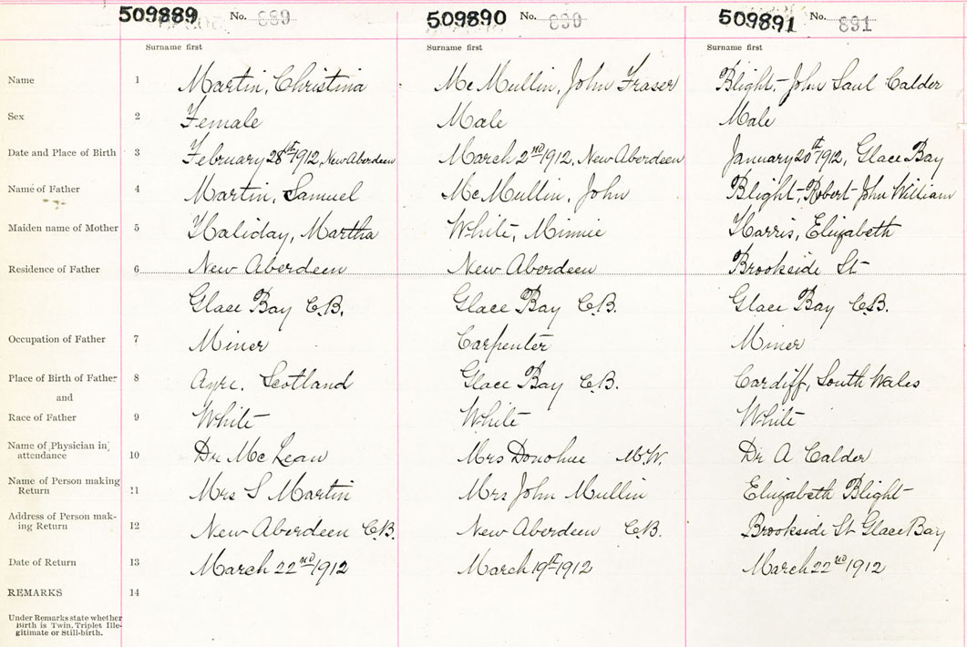 Male Birth Registration: Year: 1912 number: 50900891