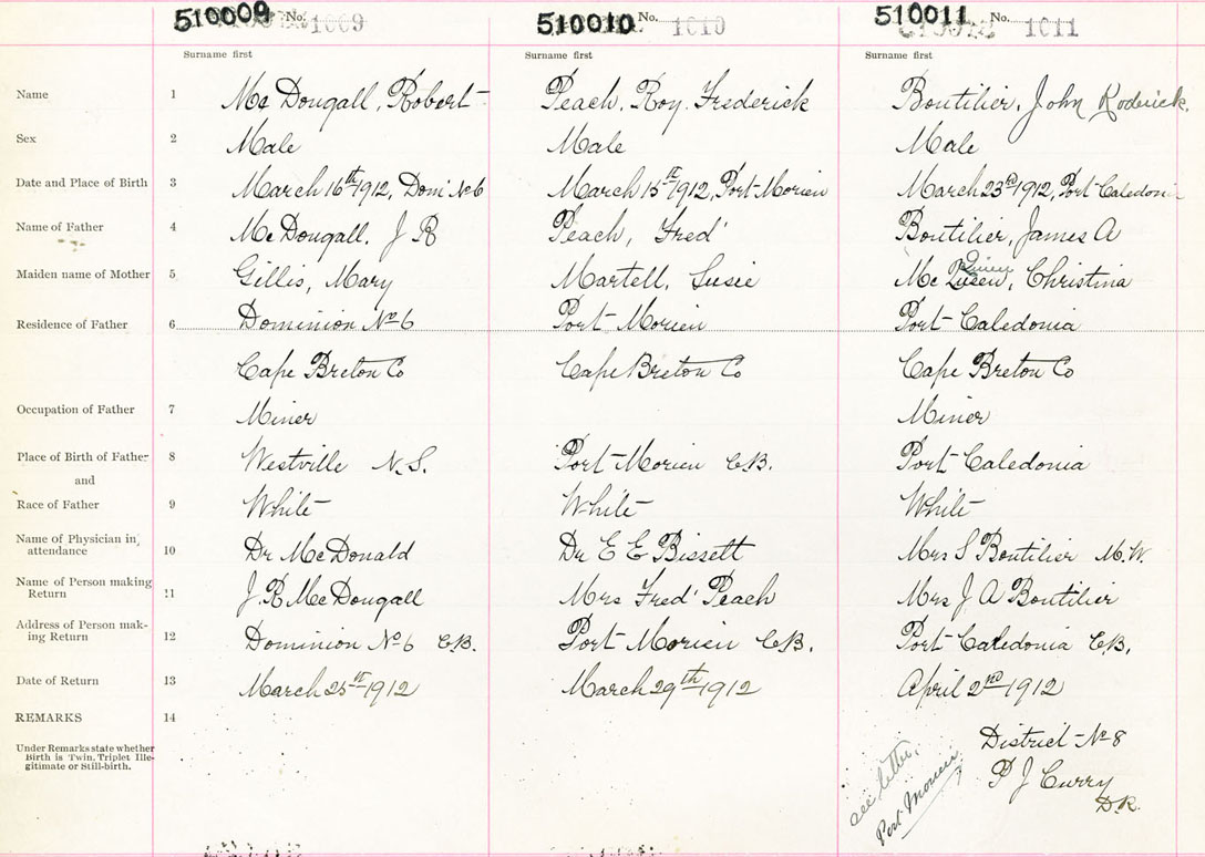 Male Birth Registration: Year: 1912 number: 51000011