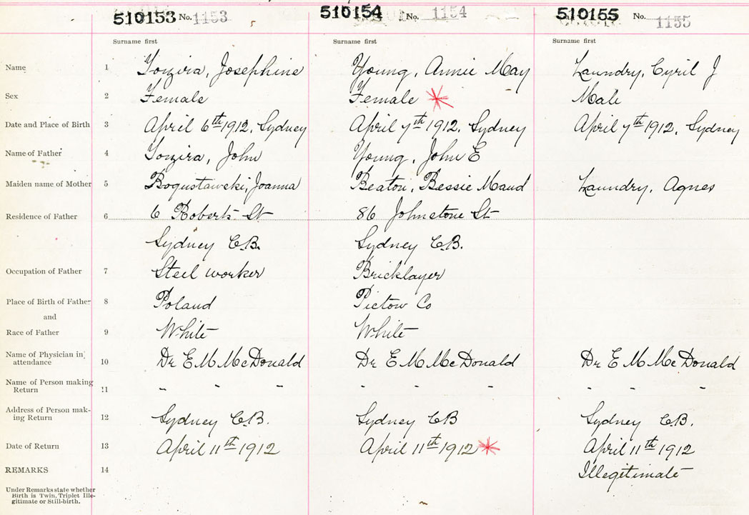 Male Birth Registration: Year: 1912 number: 51000155