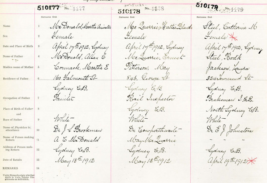 Female Birth Registration: Year: 1912 number: 51000179