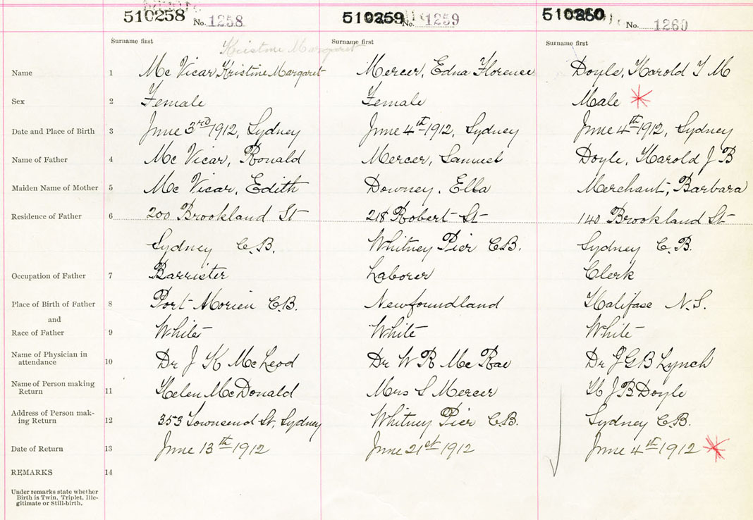 Male Birth Registration: Year: 1912 number: 51000260