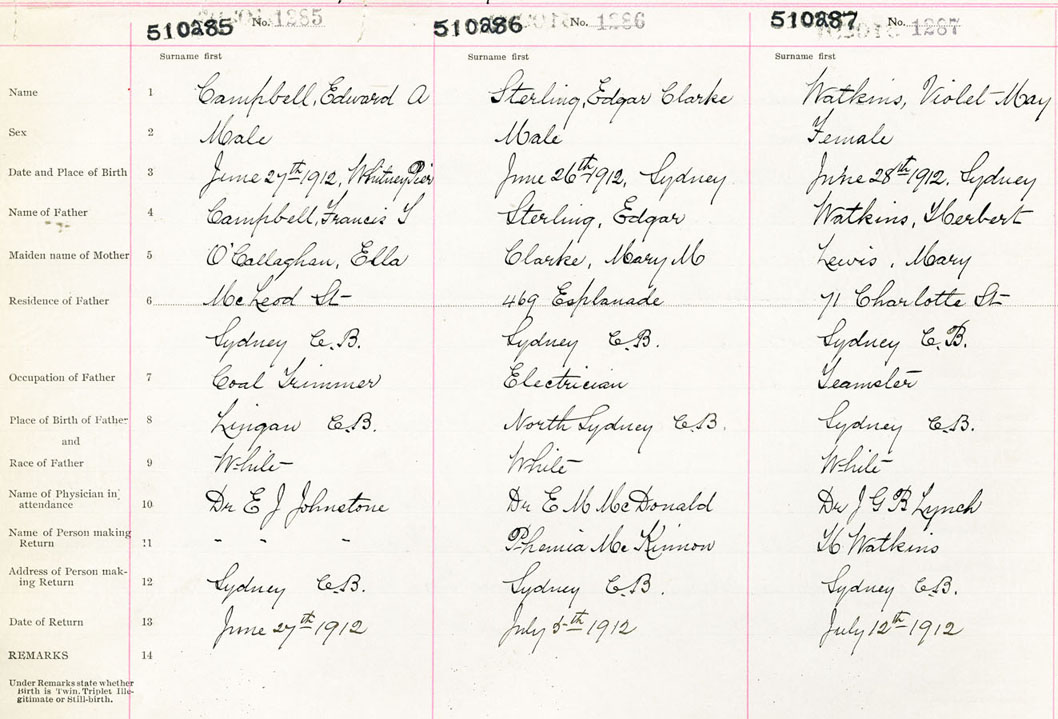 Male Birth Registration: Year: 1912 number: 51000285
