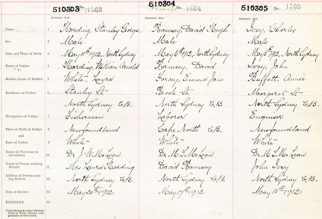 Male Birth Registration: Year: 1912 number: 51000303