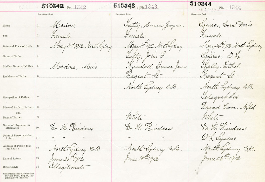 Female Birth Registration: Year: 1912 number: 51000342