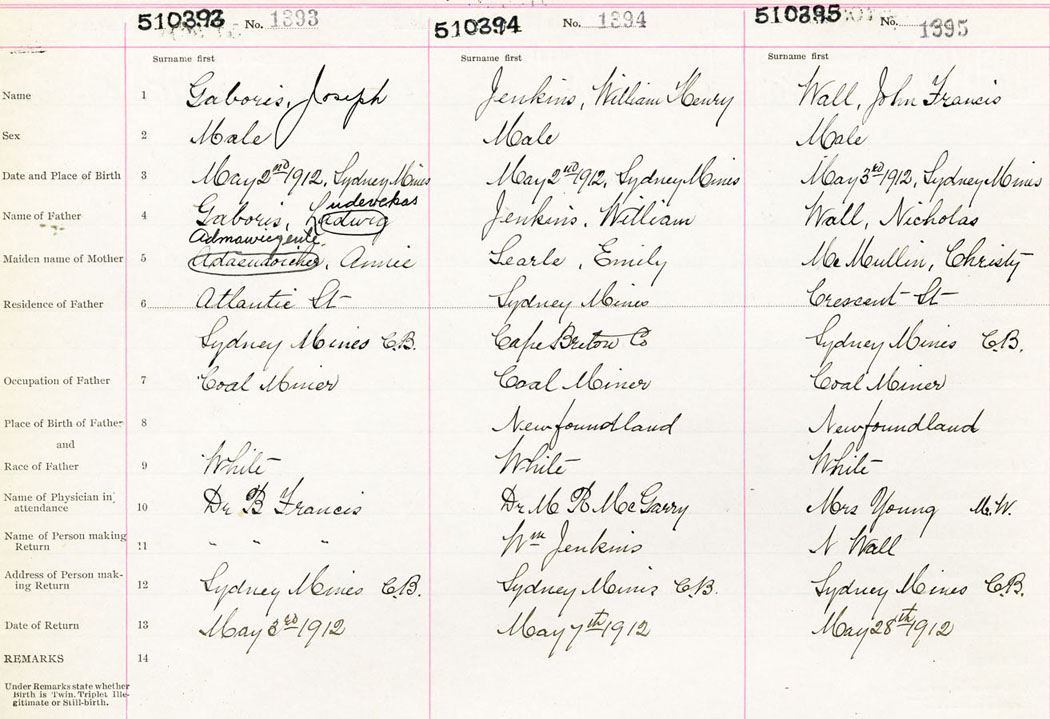 Male Birth Registration: Year: 1912 number: 51000393