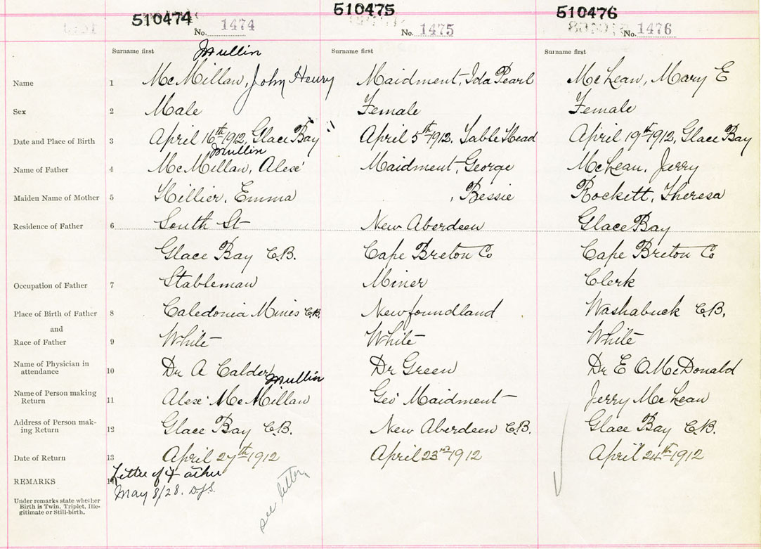Male Birth Registration: Year: 1912 number: 51000474