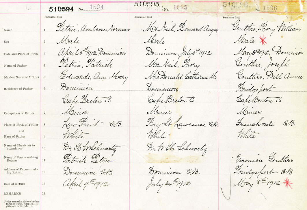 Male Birth Registration: Year: 1912 number: 51000596