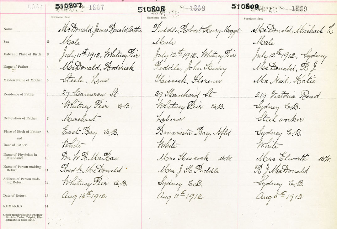 Male Birth Registration: Year: 1912 number: 51000807
