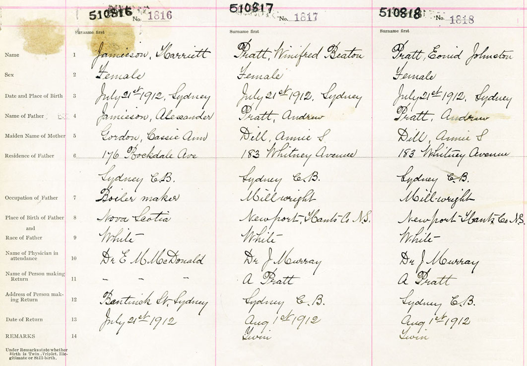 Female Birth Registration: Year: 1912 number: 51000816