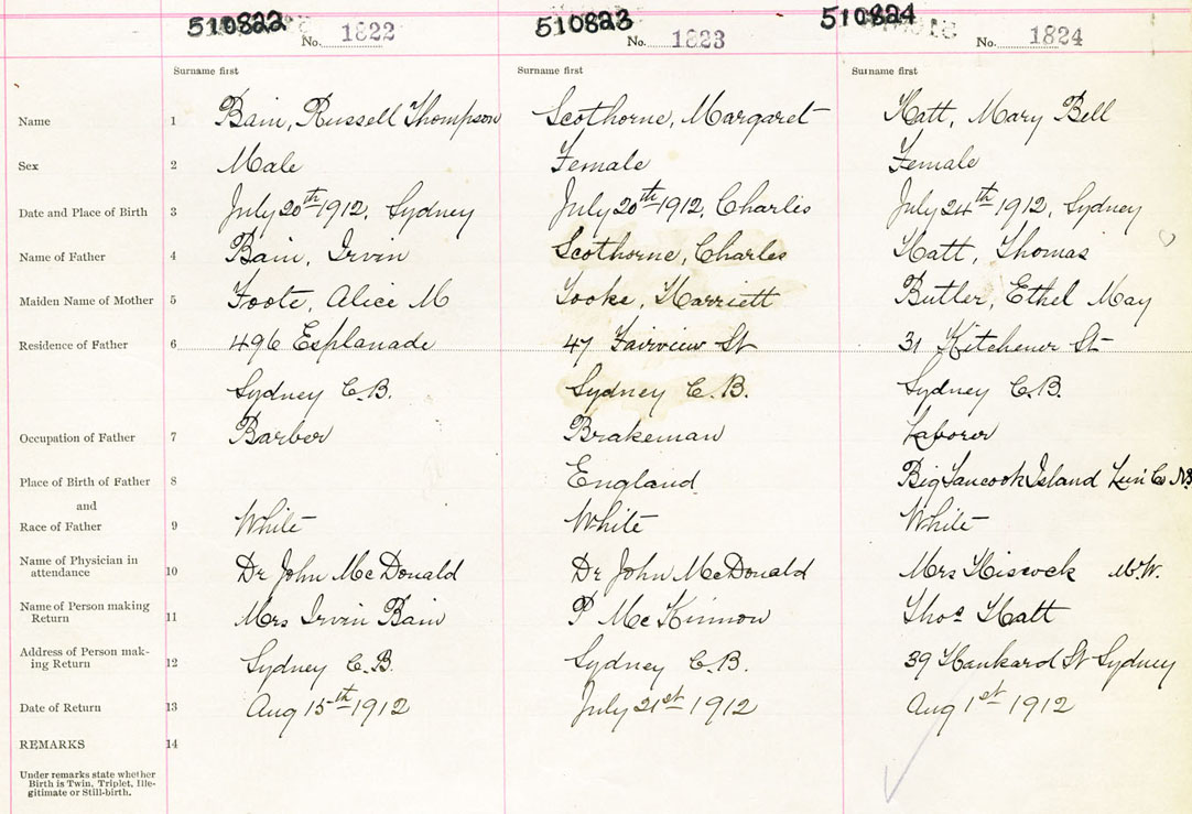 Male Birth Registration: Year: 1912 number: 51000822