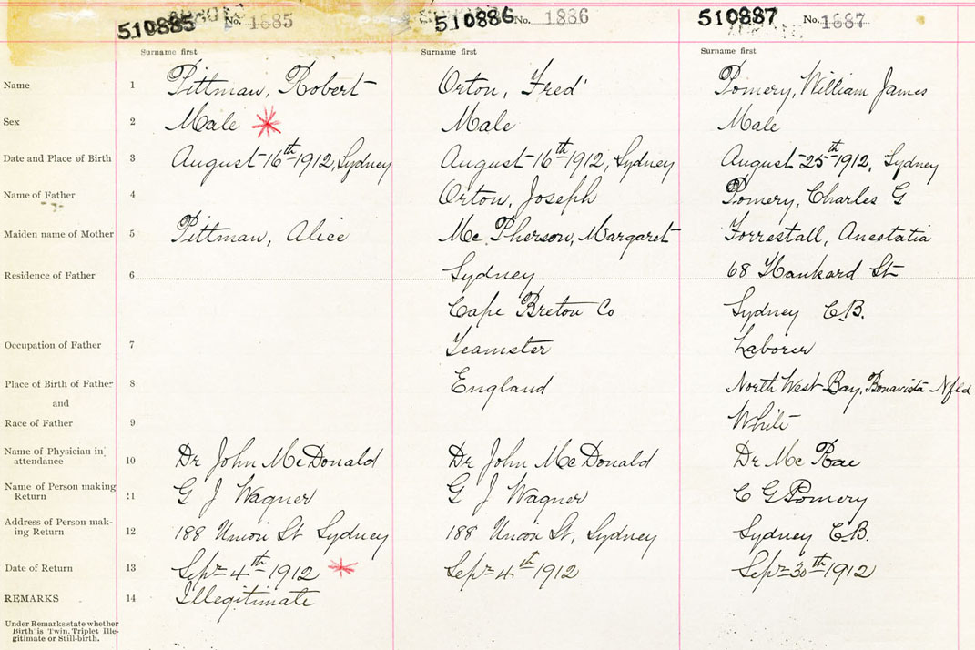 Male Birth Registration: Year: 1912 number: 51000885
