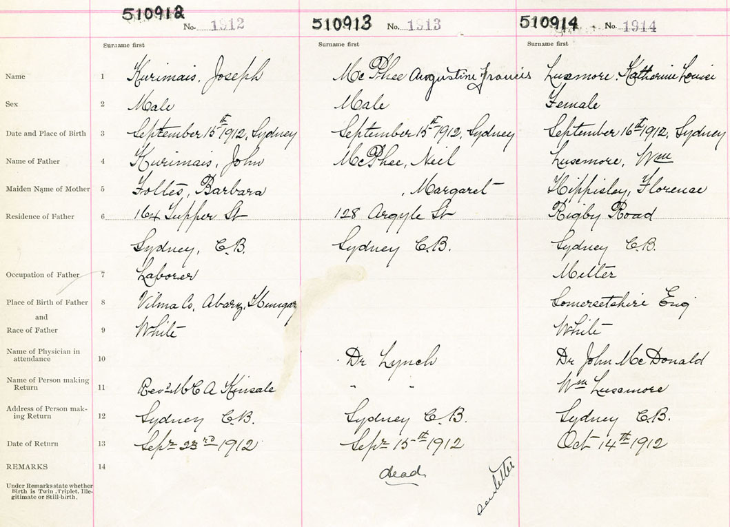 Male Birth Registration: Year: 1912 number: 51000912