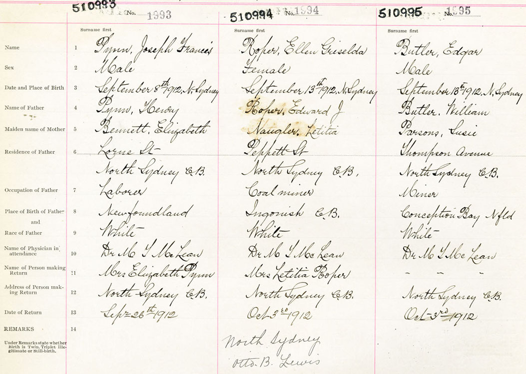 Male Birth Registration: Year: 1912 number: 51000993