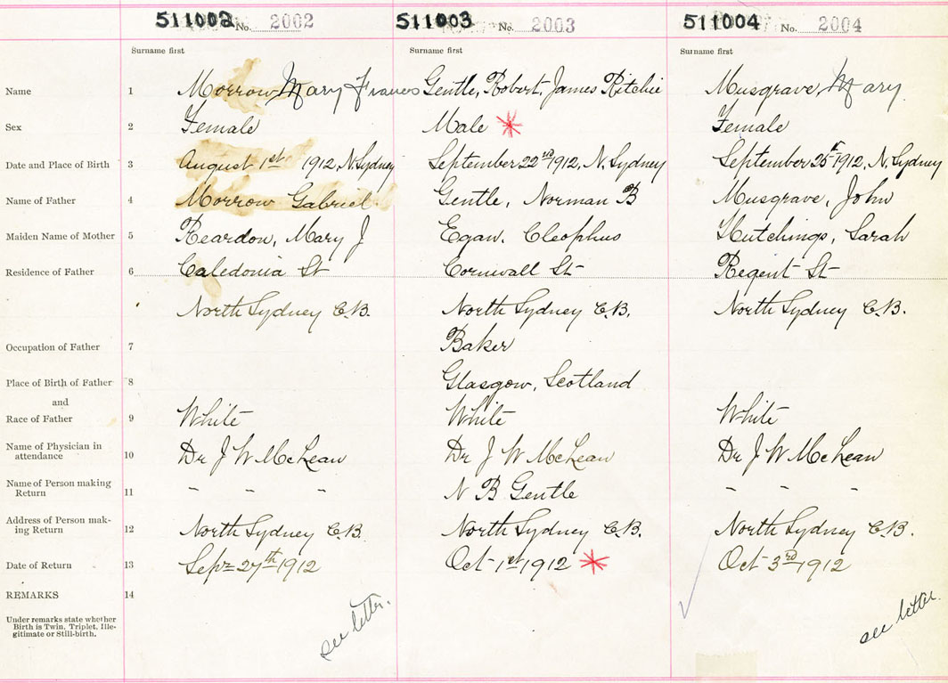 Female Birth Registration: Year: 1912 number: 51100002