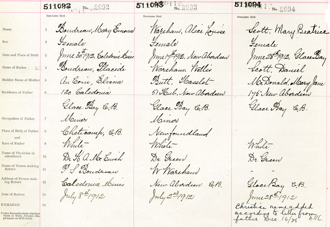 Female Birth Registration: Year: 1912 number: 51100094