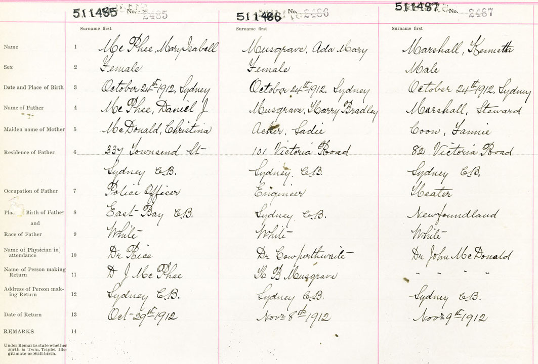Female Birth Registration: Year: 1912 number: 51100485