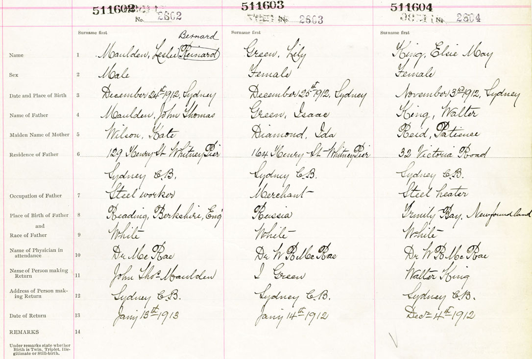 Female Birth Registration: Year: 1912 number: 51100604