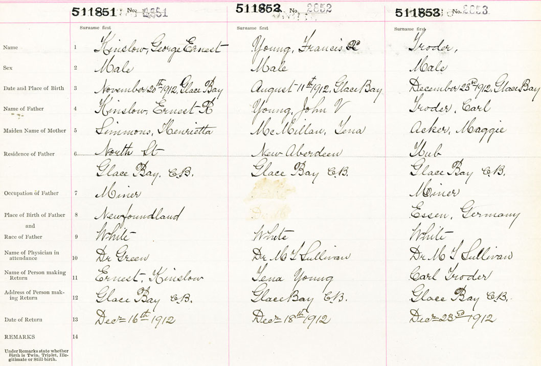 Male Birth Registration: Year: 1912 number: 51100851