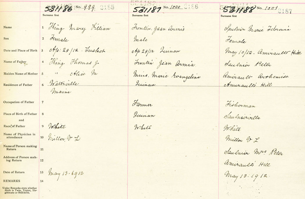Female Birth Registration: Year: 1912 number: 53100188