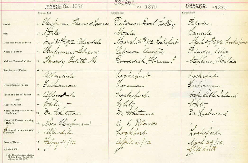 Male Birth Registration: Year: 1912 number: 53500250