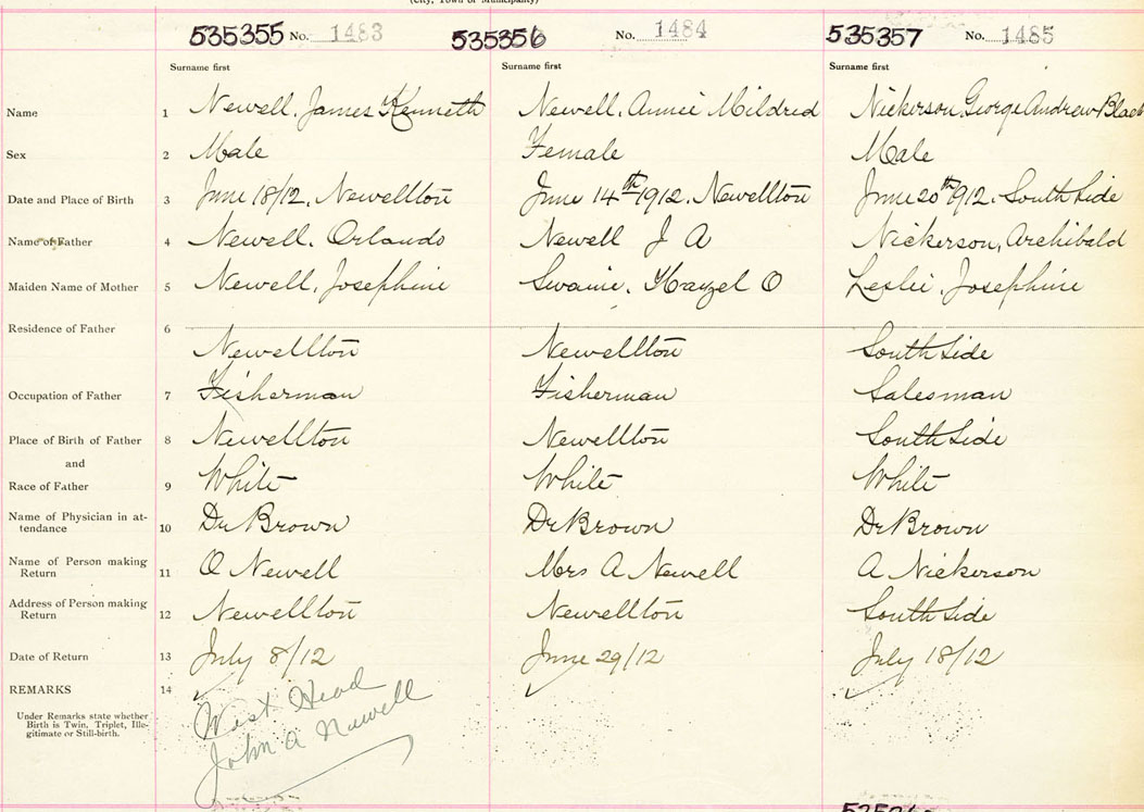 Male Birth Registration: Year: 1912 number: 53500355