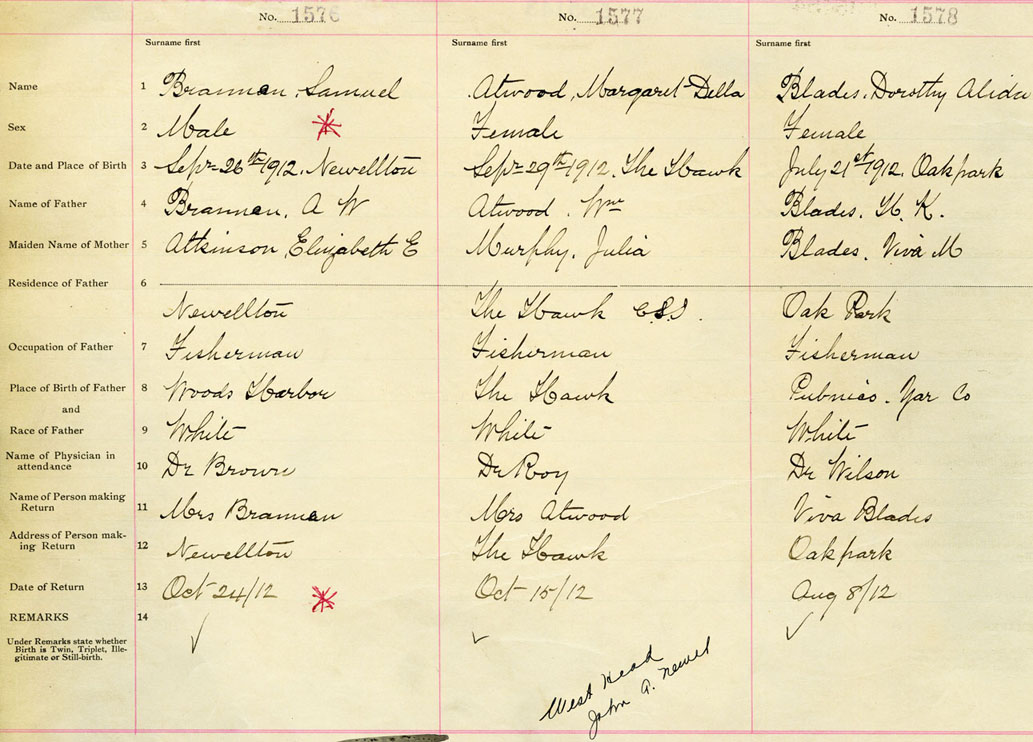 Female Birth Registration: Year: 1912 number: 53500450