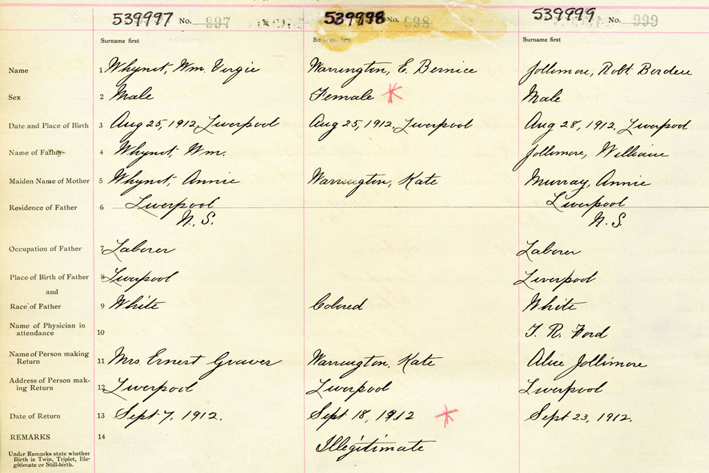 Male Birth Registration: Year: 1912 number: 53900999