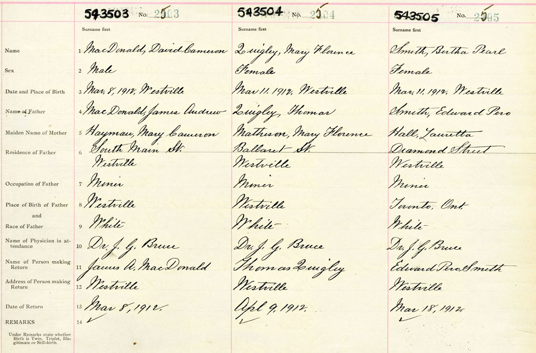 Male Birth Registration: Year: 1912 number: 54300503