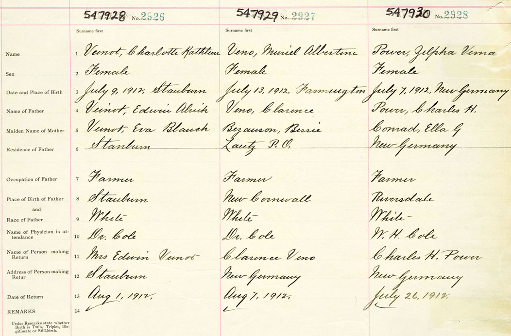 Female Birth Registration: Year: 1912 number: 54700930