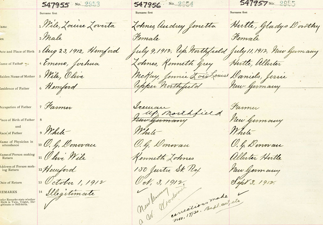 Female Birth Registration: Year: 1912 number: 54700957