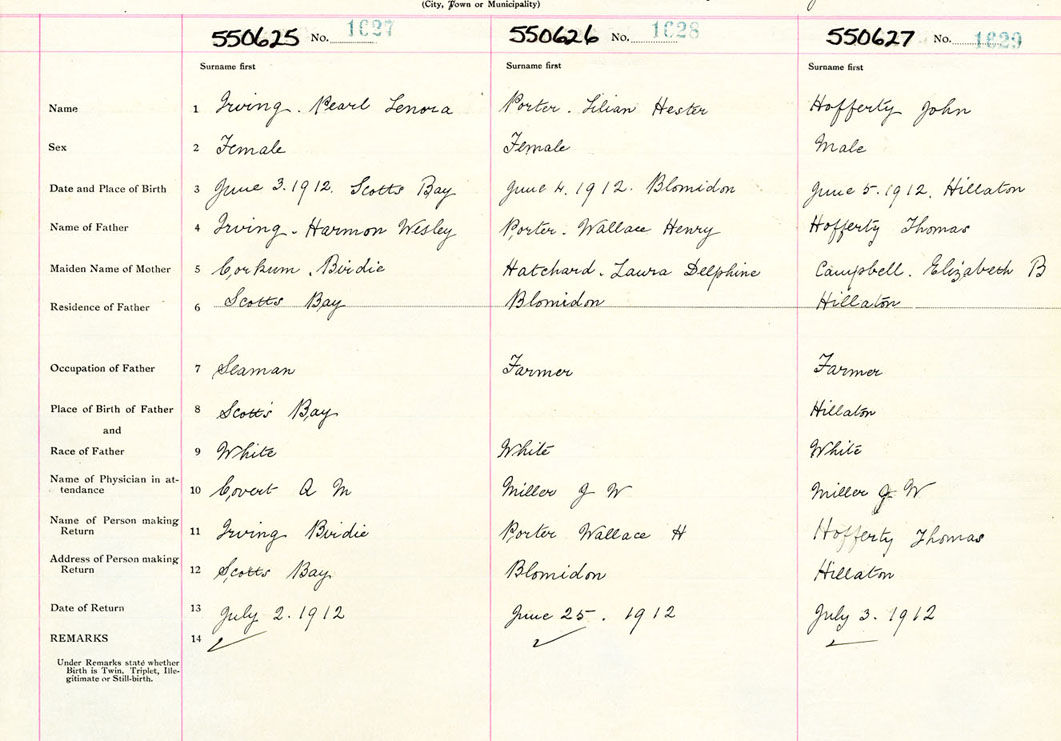 Male Birth Registration: Year: 1912 number: 55000627