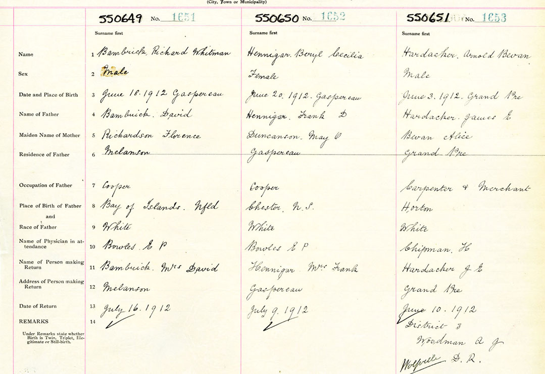 Male Birth Registration: Year: 1912 number: 55000651