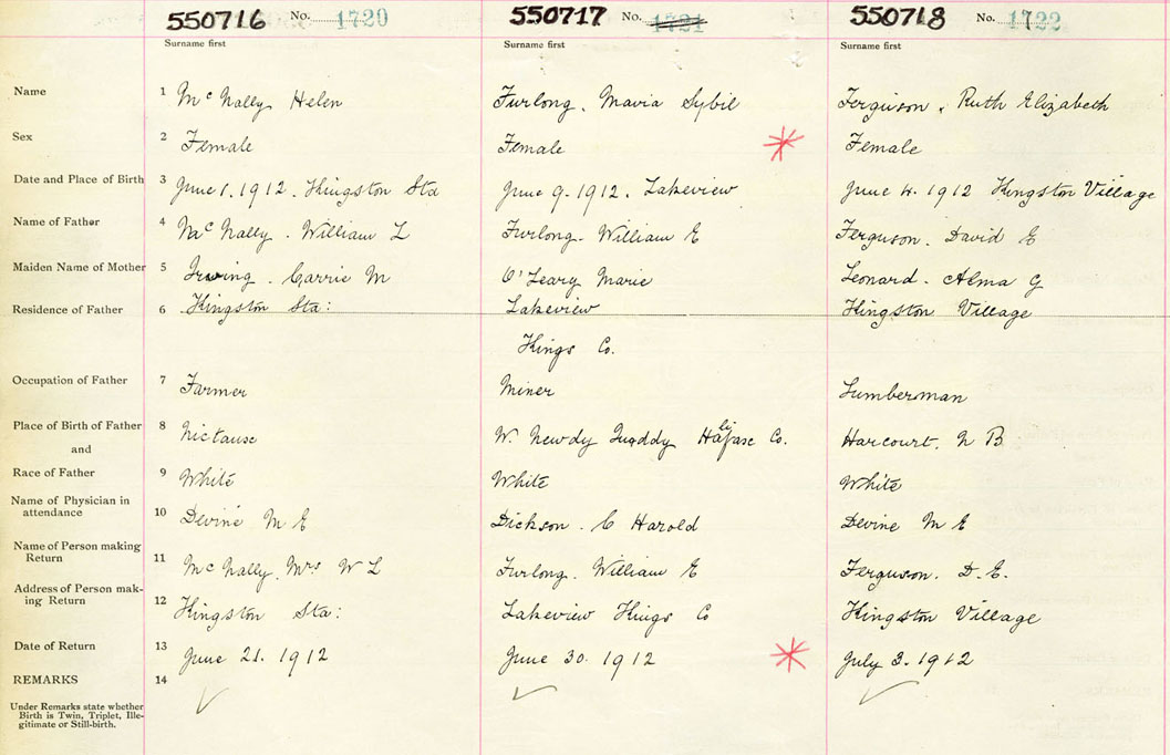 Female Birth Registration: Year: 1912 number: 55000718