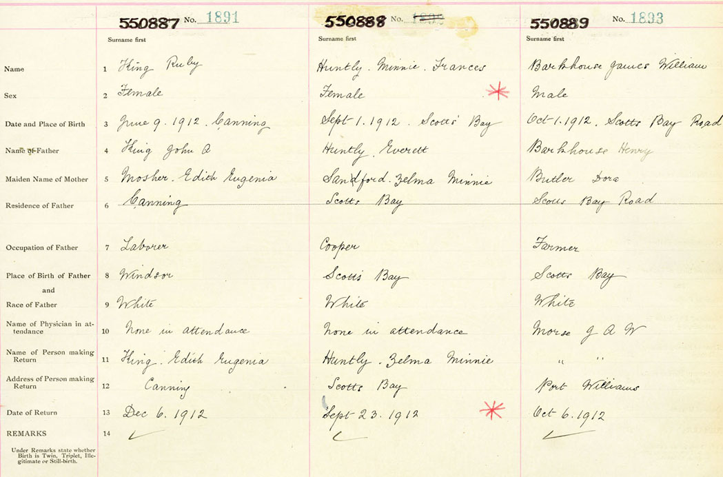 Female Birth Registration: Year: 1912 number: 55000887