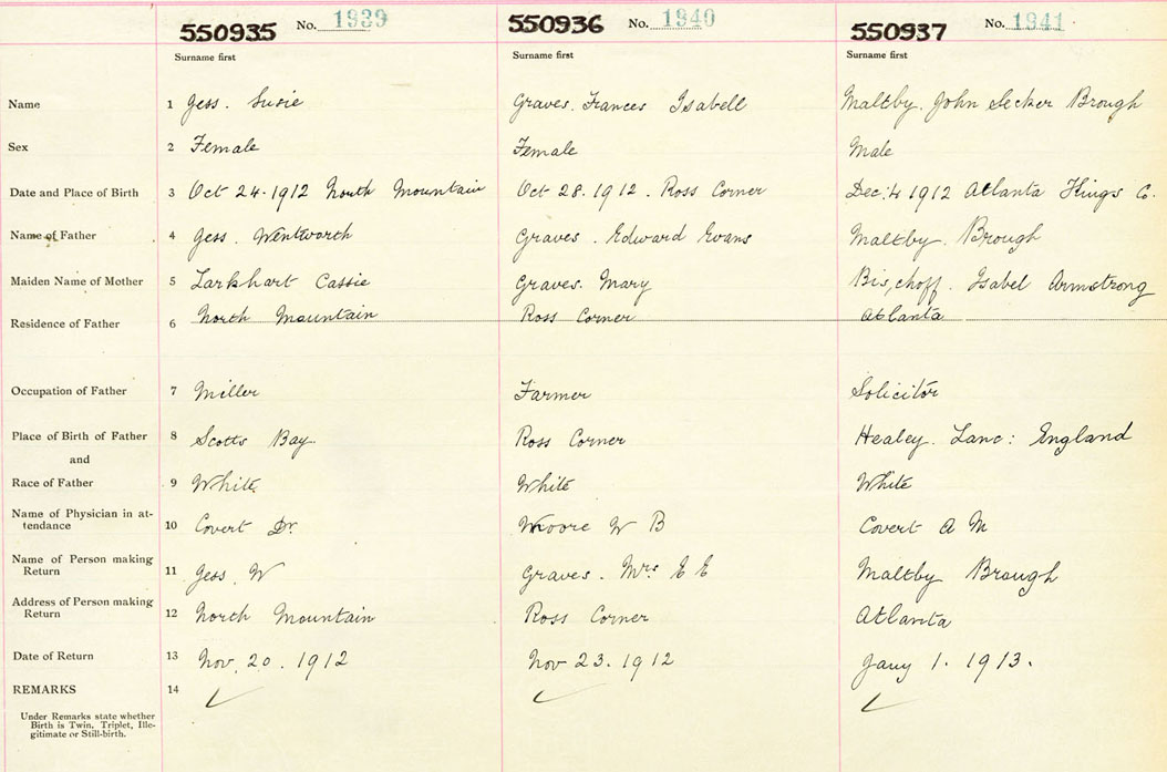 Female Birth Registration: Year: 1912 number: 55000935