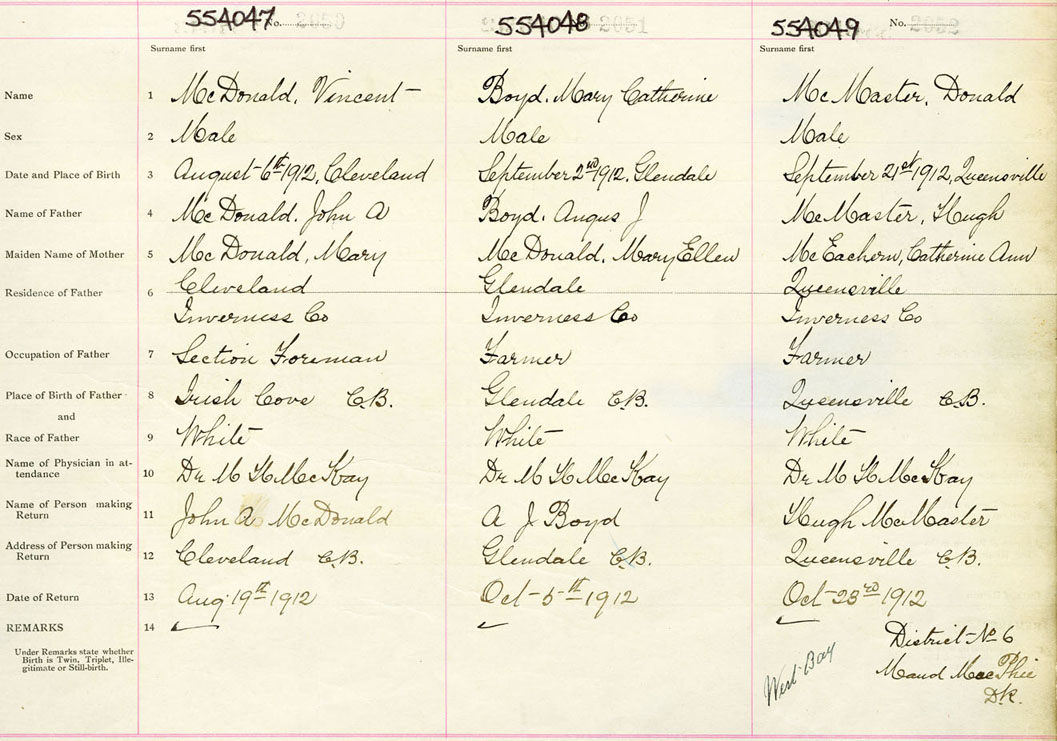 Male Birth Registration: Year: 1912 number: 55400049