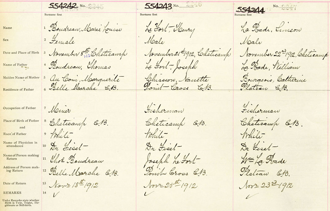 Male Birth Registration: Year: 1912 number: 55400244